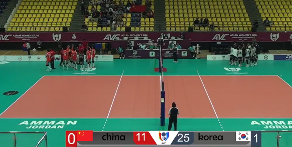 第二局开始,中国队迅速调整,何琦在阵容轮转和战术布置上更具侵略性,副攻线屡次打出快攻得分,边攻在节奏放缓中逐渐找到手感。开局10-6建立领先后,中国队牢牢掌控局面,韩国队虽试图追分,但始终未能缩小差距,在24-20局点时,韩国队一次进攻触网,中国队25-20扳回一城。